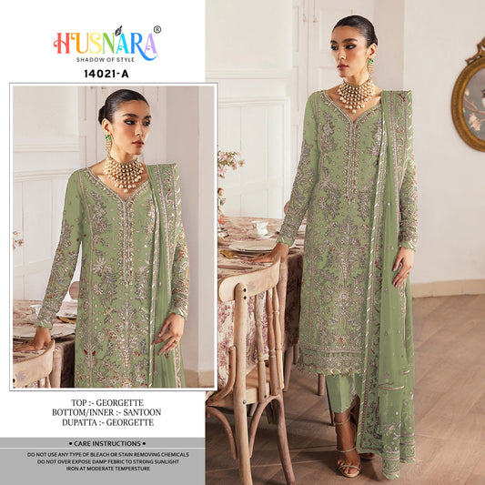 1741 HUSNARA Designer Georrgette Embroidered Suit With Zarkhan (4 pcs Set)