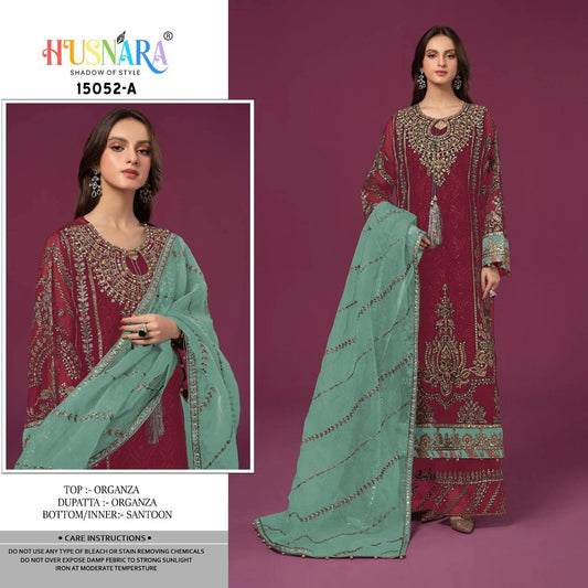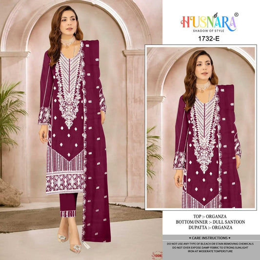 1732 HUSNARA Designer Organza Embroidered Suit With Zarkhan (4 pcs Set)